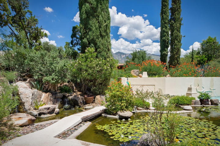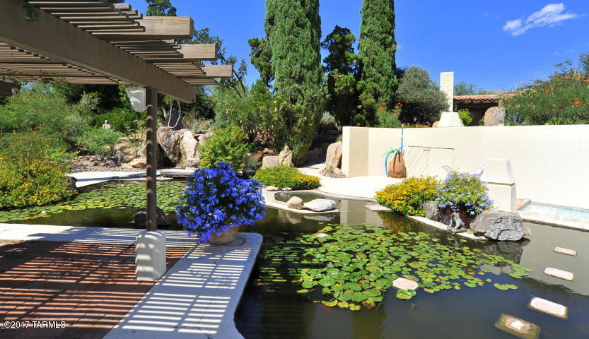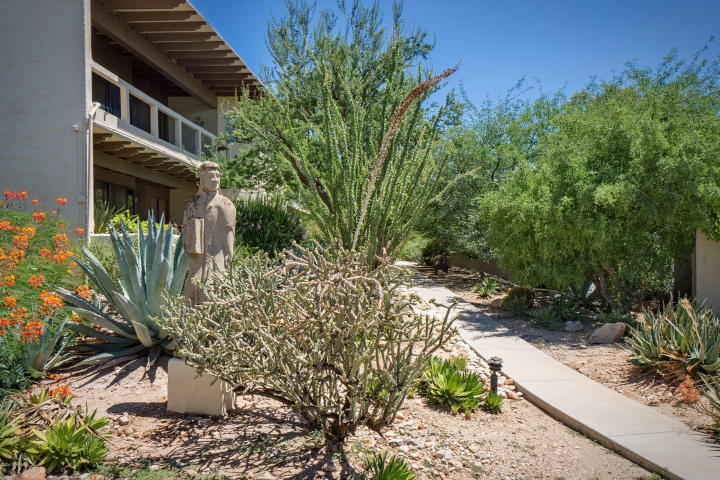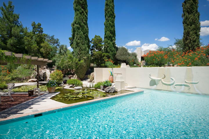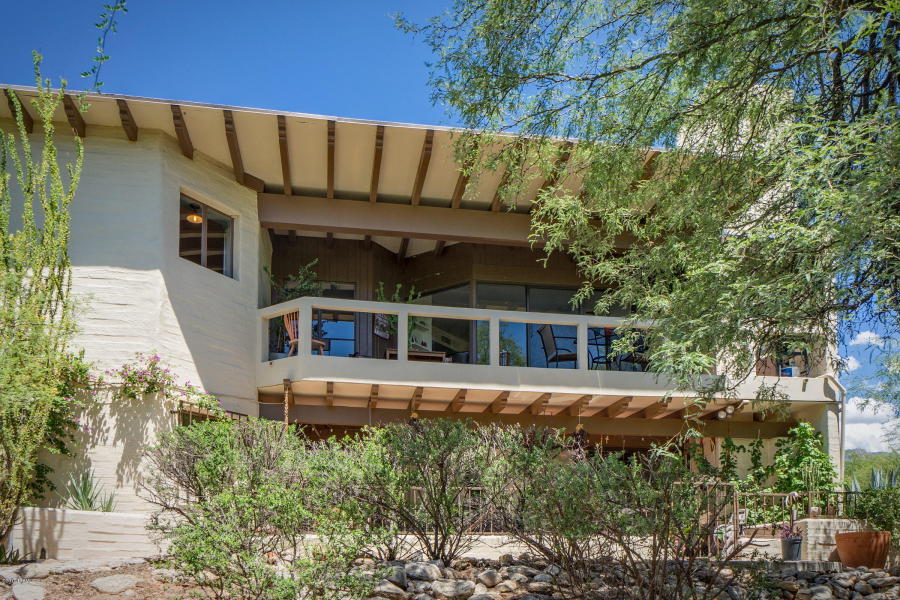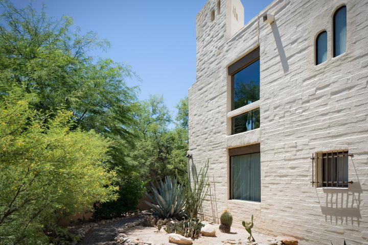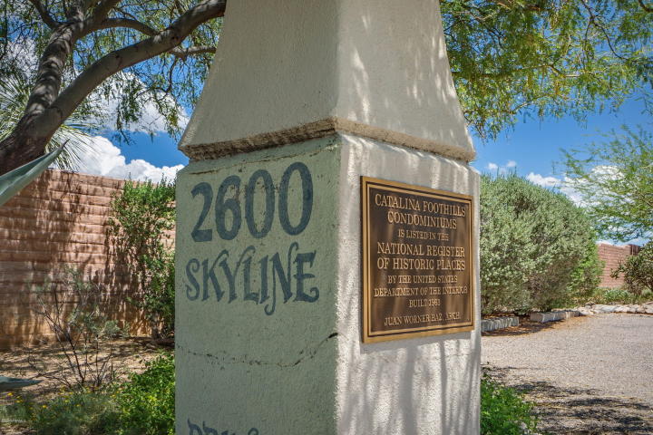 Charming midcentury Catalina Foothills Condominium designed by architect Juan Worner Baz for John & Helen Murphey and listed on the National Register Of Historic Places. This elegant 1963 built end unit adobe home features expansive windows with amazing city and mountain views, private patios overlooking lush vegetation, open floor plan, fireplace , North/South exposure, concrete flooring, dual master suites and a convenient Northern Tucson location across from La Encantada Mall. The Catalina Foothills Condos amenities include a spacious pool area with koi pond in a park-like setting.
