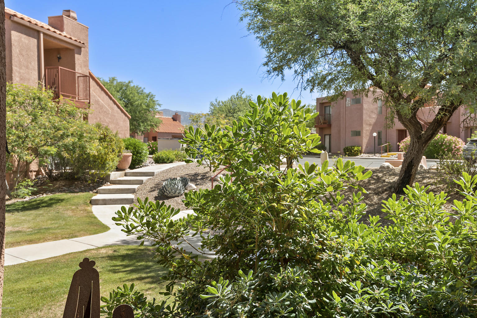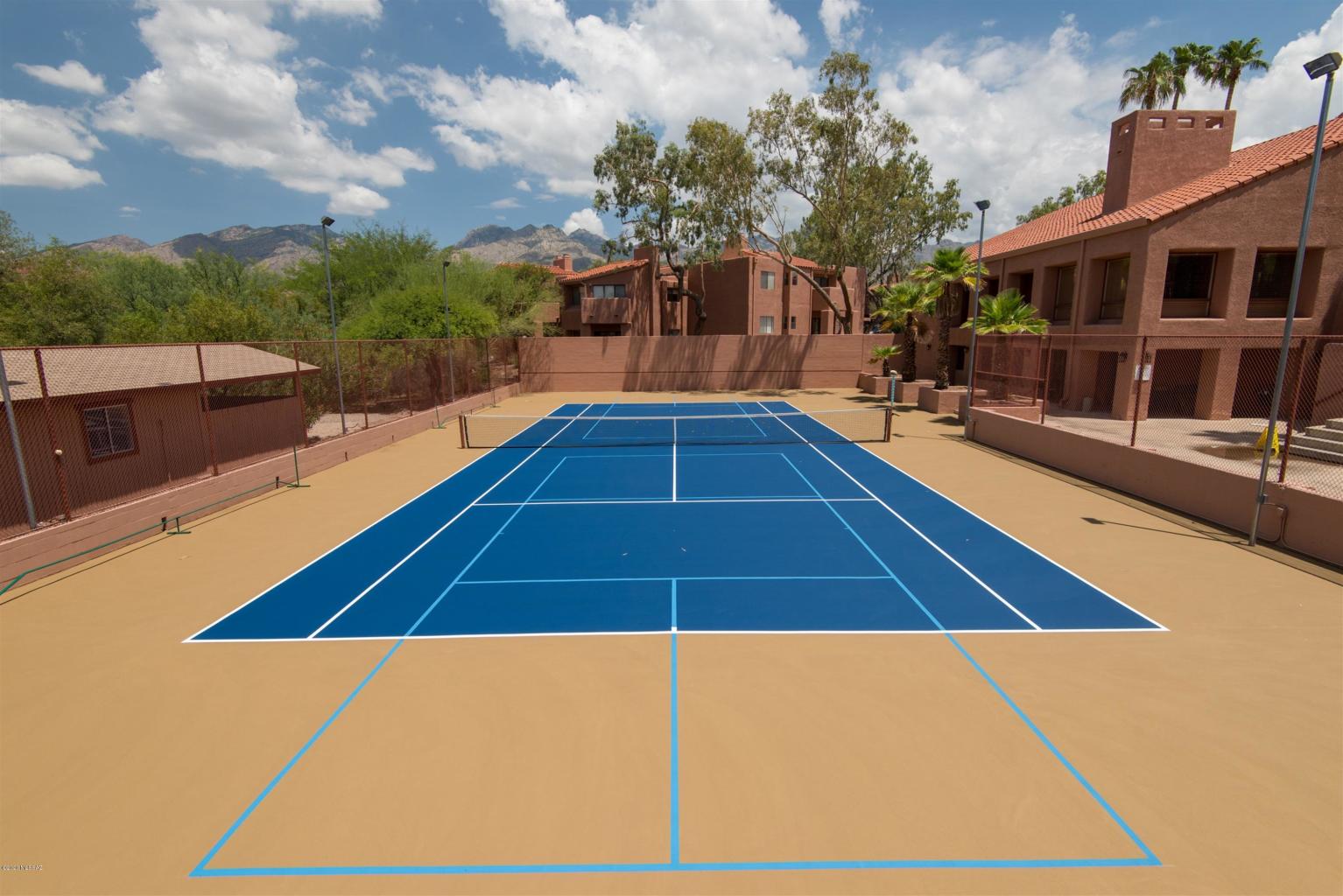 Private ground floor corner unit condo with mountain views in the luxurious gated Catalina Foothills community of Ventana Vista Condo. This charming Northern Tucson property features an open kitchen with black appliances, breakfast bar & Corian countertops, romantic wood burning fireplace, an abundance of natural light, laundry room with washer / dryer, master suite with walk-in closet, covered patio overlooking grassy park-like grounds and a convenient location near shopping, numerous restaurants and just South of Sabino Canyon Park. The Ventana Vista Condos resort style amenities include a heated pool & 2 spas, enormous clubhouse with gym, full kitchen, pool table, library & on site manager, tennis / pickle ball court, bbq grills and a vibrant community with organized activities.