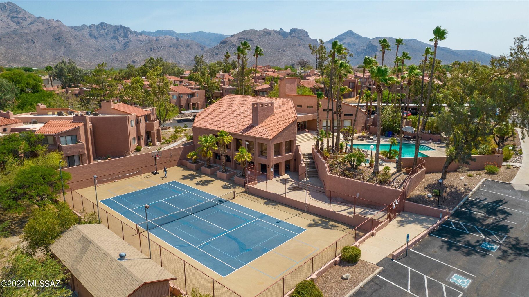Spacious fully furnished 2bd/2ba+loft located in the popular Ventana Vista Condominiums. Primary bedroom is located upstairs with a large walk-in closet, dual bathroom sinks, shower/tub, loft area for relaxing and a private balcony to enjoy the mountain views. On the main floor is the 2nd bedroom & bathroom, laundry closet with washer/dryer, huge flat screen TV and plenty of seating. Eat-in kitchen/dining area, SS appliances and lots of natural lighting. The second patio offers views of the secluded community spa. You will love this condo with nobody above or below you! Tile & laminate flooring throughout. Fabulous location near Sabino Canyon park, shopping, restaurants & more. Resort-like amenities include a heated pool, 2 spas, tennis/pickle ball court, fitness center and clubhouse.